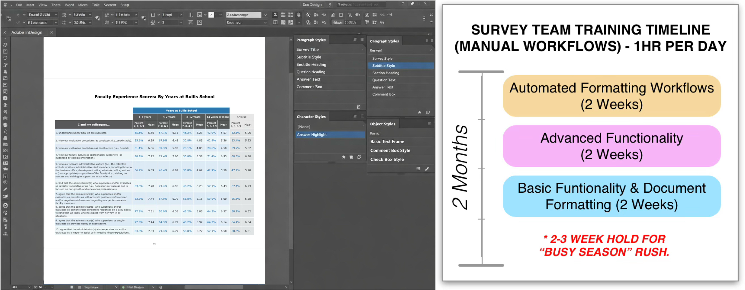 This situation presented an enticing opportunity: Since these smaller projects typically measured predetermined indicators, I championed the use of automation to serve this unmet market need, all without burdening the Survey Team with extra work.
